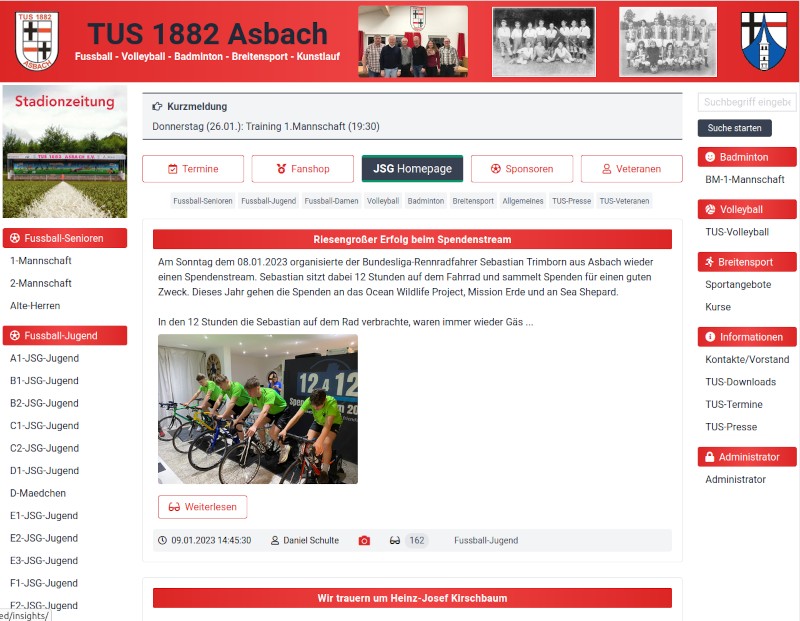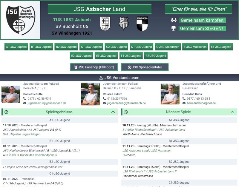 jsg.tusasbach.de informiert über die verschiedenen Teams und das aktuelle Spielgeschehen.