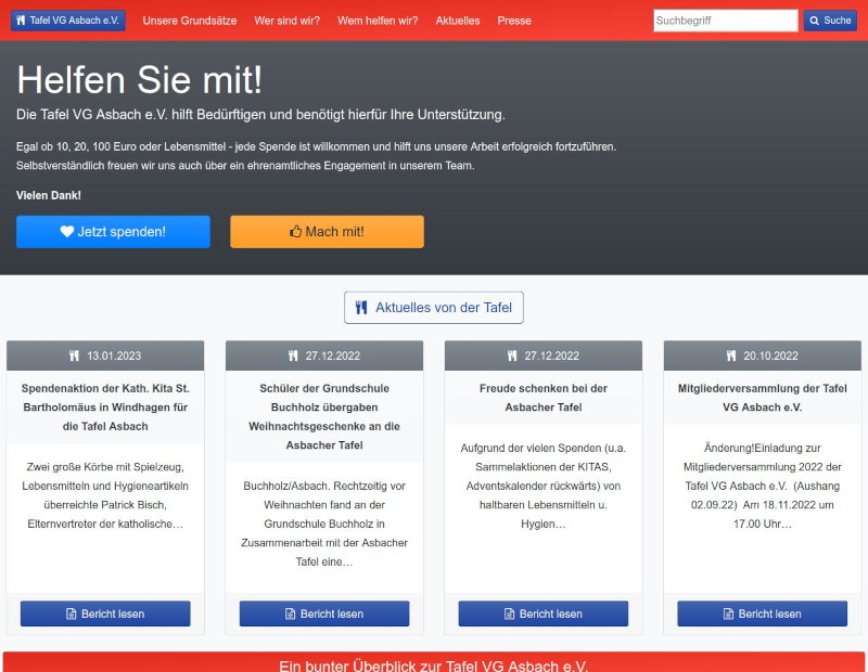 asbacher-tafel.de berichtet über die Arbeit des Vereins und dient als Anlaufstelle für Spenden und Zuwendungen.